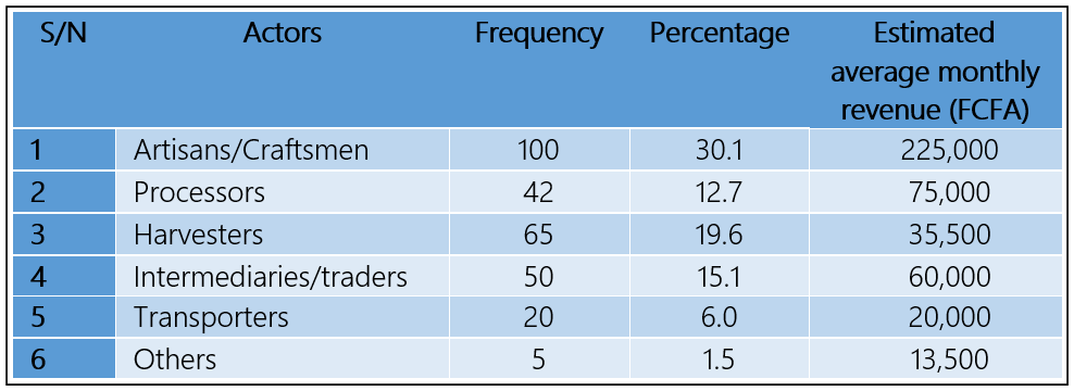 Table 1: Estimated Mean Monthly Revenue Earned by Actors Involved as a Livelihood Strategy